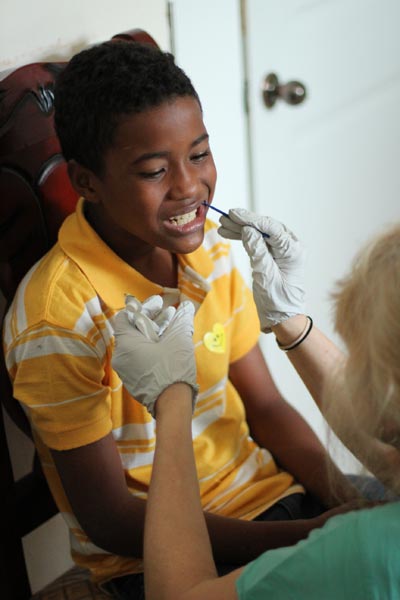 We were supposed to be at the clinic for two hours; we were there for four. The doctors (Justin, Jennifer) and nurses (Rita, Chris, Kathy, Raeann) saw over 30 patients. We gave away many dental care kits and bags of vitamins, made some new friends, and saw two legitimate emergencies: a young man who had fallen off a motorcycle and had seriously abraded his leg (he needed further treatment in Cotui), and another young man who had an allergic reaction to a bee sting.