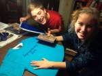 Tracy Smith had the idea to create a t shirt for our trip – we have 2 designs – the DR logo and our US website. On the drprojects.org design, we will have people add their own handprints – if they like. Tracy will bring ink and the screens to create more t shirts in the DR.